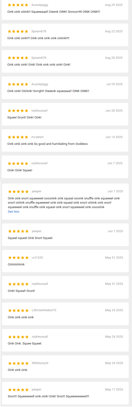 Since I opened my SQUEAL For Me phone line in May 2025, it’s been one of my most popular offerings. Originally, it was only open on #SquealForMeSaturdays, but the demand was so high that I began taking pig calls whenever I was online. (Lately, less often — life and travel happen — but the hunger is still there.)